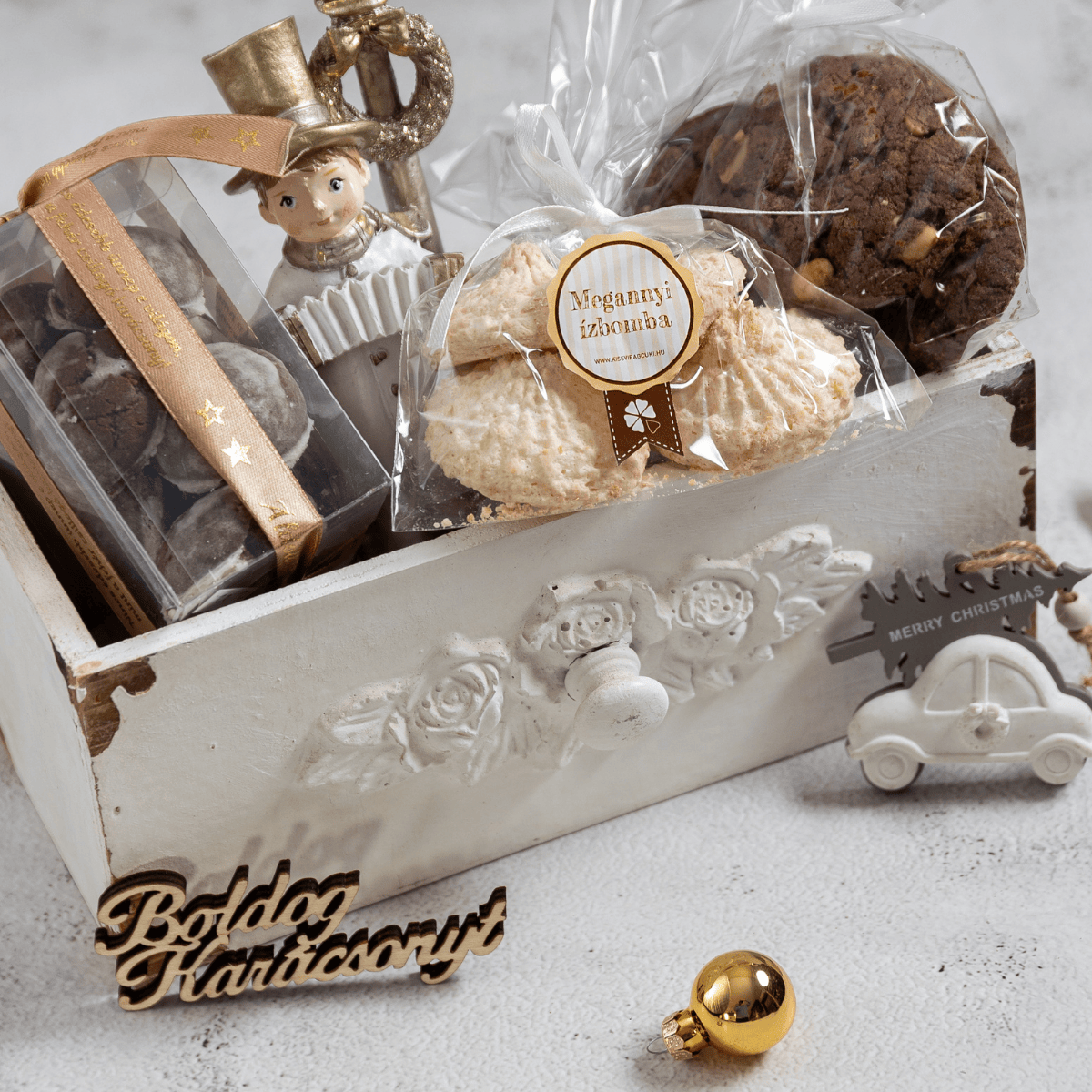 Ezek az édes csomagok tele vannak finomságokkal és apró meglepetésekkel – kell ennél szebb és finomabb ajándék? Az ünnepi időszakban mindig van készleten üzleteinkben, előrendelés esetén pedig egydileg is összeállítható.